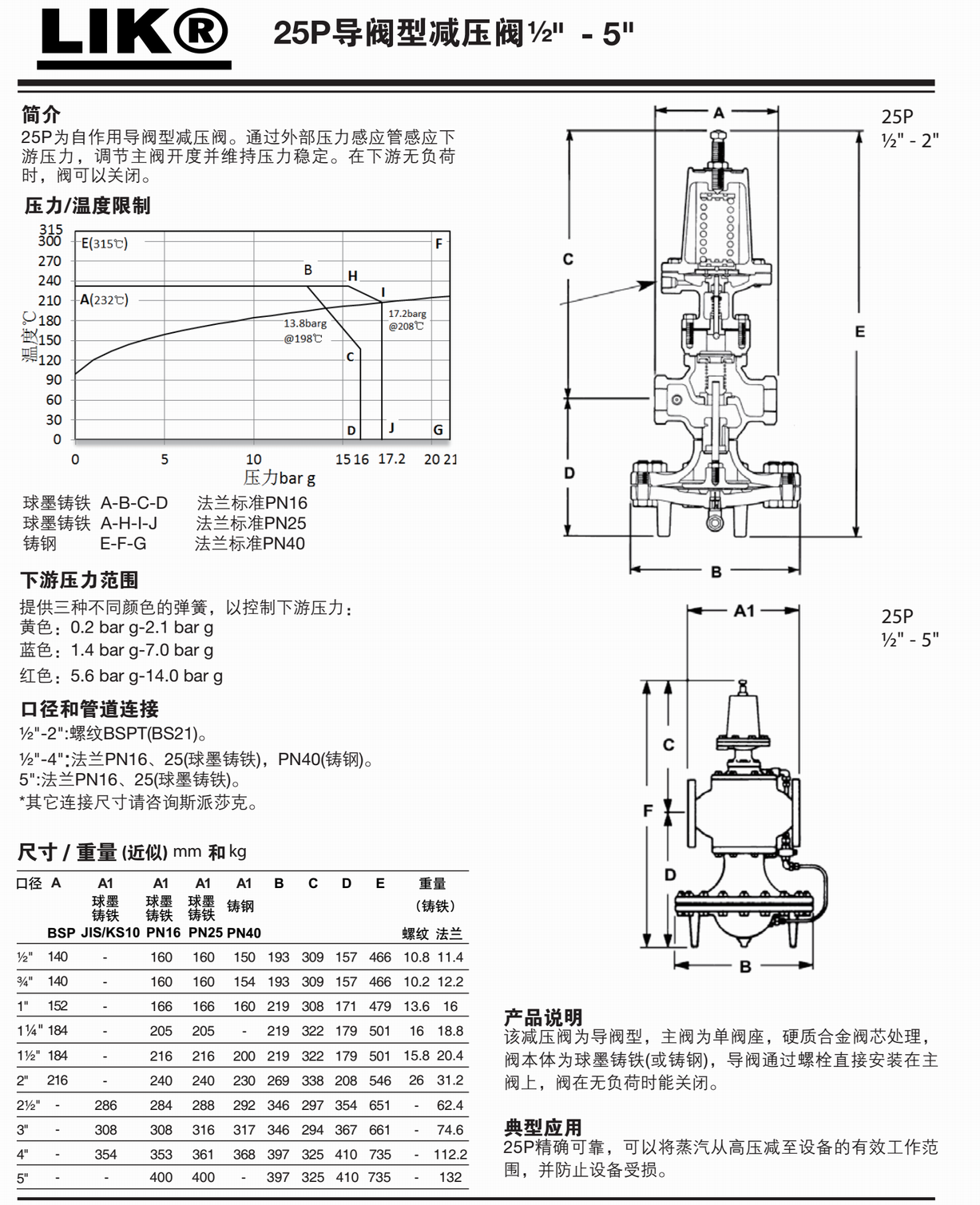 DP143H為高溫的型號,DP163導閥理隔膜式蒸汽減壓閥為全不銹鋼材質。DP163設計主要用于使用潔凈的蒸汽場合,通常其安裝管道和設備等均為不銹鋼,安裝于高精度過濾器(25微米)之后.DP163G為軟密封減壓閥型號,用于壓縮空氣系統(tǒng)或其它工作氣體(不適用于氧氣)