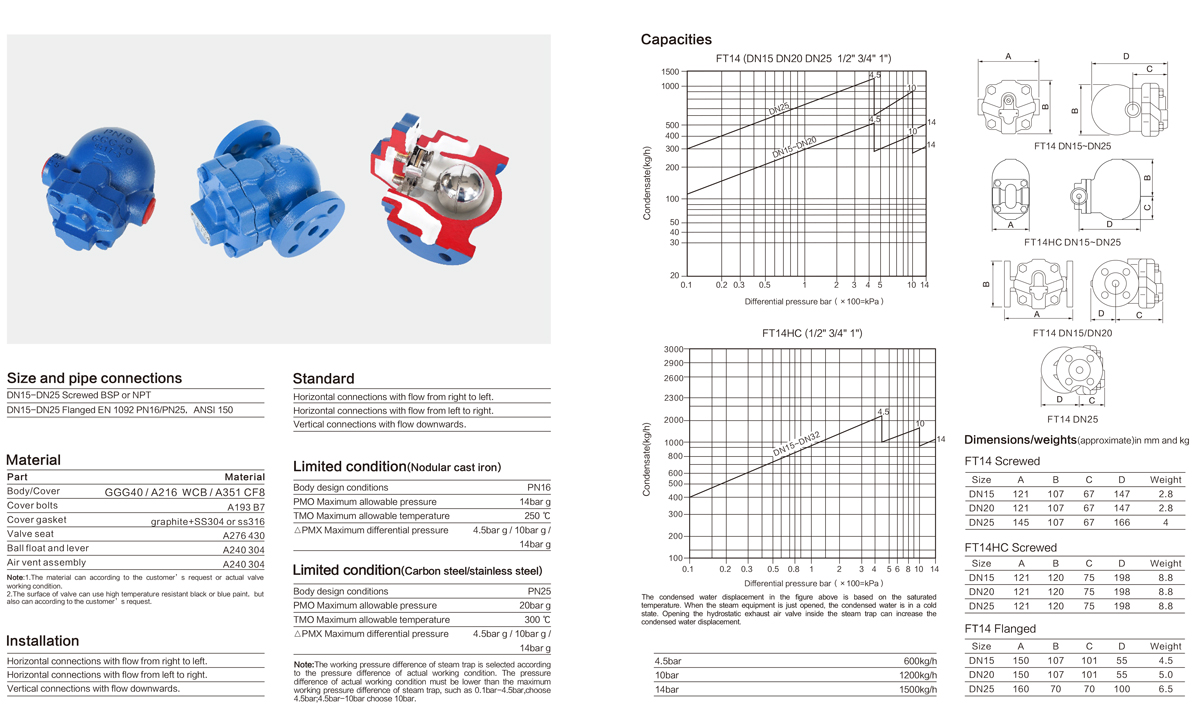 進口杠桿浮球式蒸汽疏水閥主要技術參數