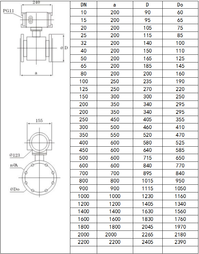 進口污水電磁流量計結構尺寸
