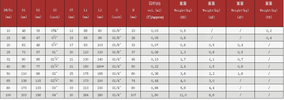 ◆DN10-DN100: 不銹鋼1.4404(E)