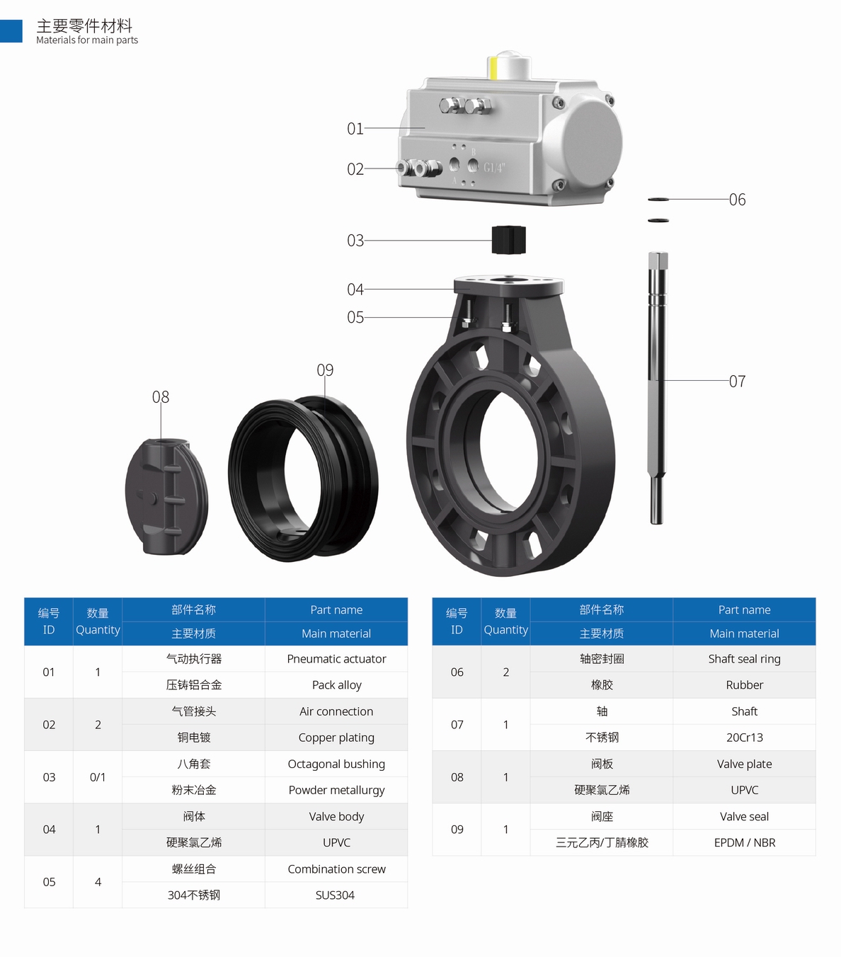 4、氣動塑料蝶閥根據(jù)不同的介質(zhì)有多種材料可選,耐腐蝕性強,體積小,適用于多種管路,應(yīng)用范圍廣