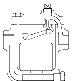 倒吊桶式疏水閥內(nèi)部是一個(gè)倒吊桶為液位敏感件,吊桶開口向下,倒吊桶連接杠桿帶動(dòng)閥心開閉閥門。倒吊桶式疏水閥能排空氣,不怕水擊,抗污性能好。過冷度小,漏汽率小于3%,最大背壓率為75%,連接件比較多,靈敏度不如自由浮球式疏水閥。因倒吊桶式疏水閥是靠蒸汽向上浮力關(guān)閉閥門,工作壓差小于0.1MPA時(shí),不適合選用。