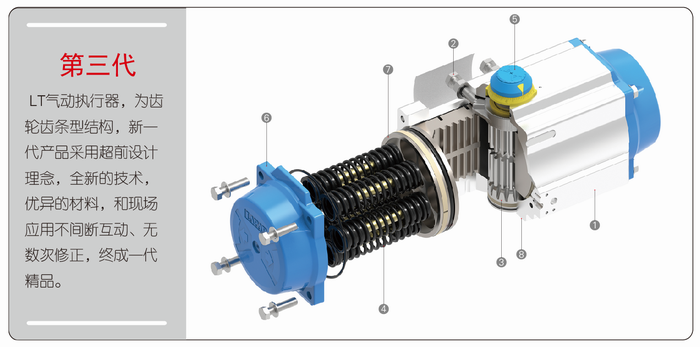 6、側蓋:不需要閱讀銘牌信息,就能通過側蓋的不同型式來識別雙作用或單作用氣動執行機構。