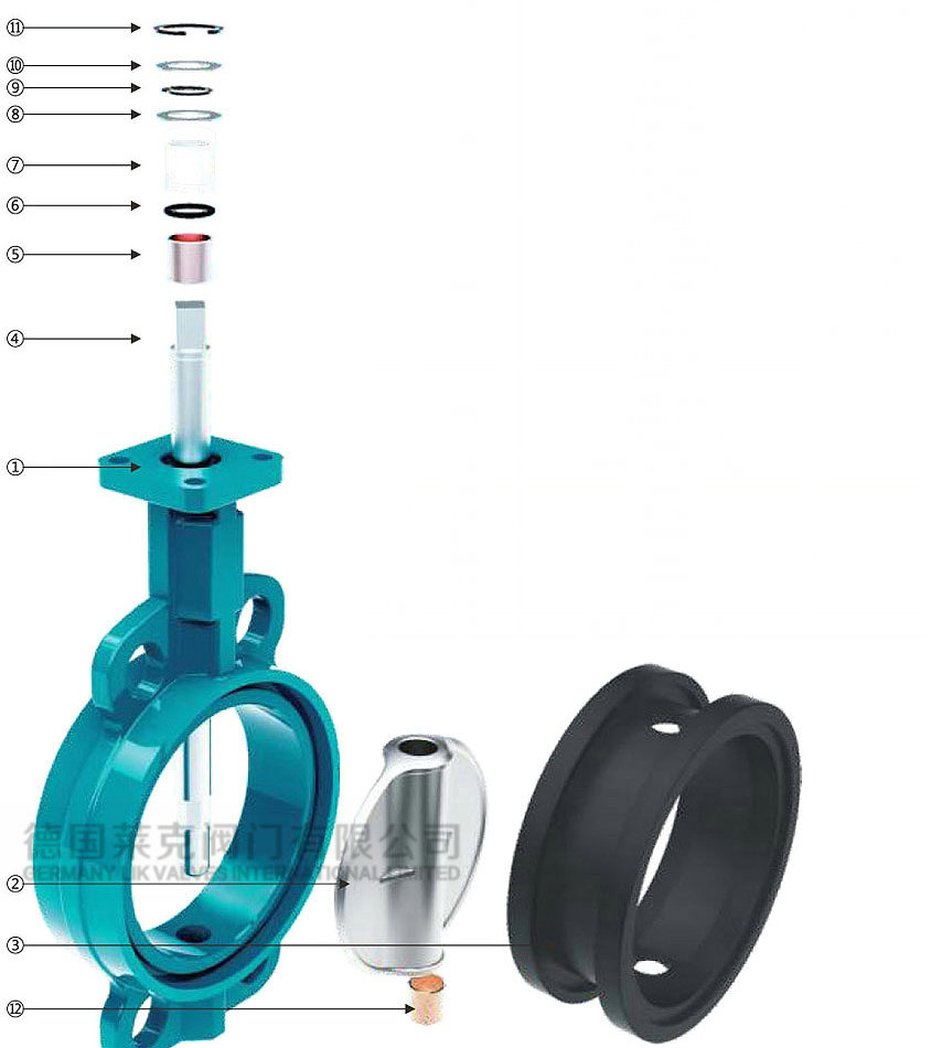 2、在安裝閥門時,管道上的法蘭內口必須與對夾式蝶閥的耳朵孔位對正,法蘭片與蝶閥的橡膠密封圈緊緊壓住貼合,不用再使用密封墊圈。
